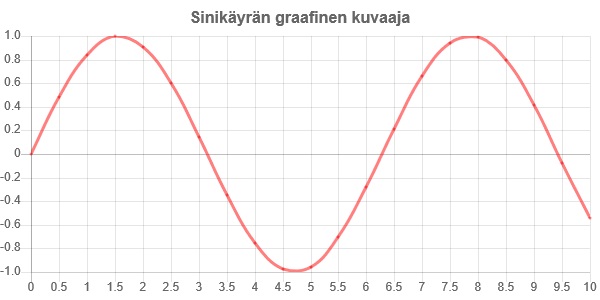 Sovellus piirtää sinikäyrän kuvaajan kun sille annetaan arvot.